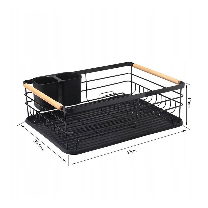 Sprawdzi się świetnie zarówno w dużej jak i małej kuchni. Dzięki temu organizacja naczyń podczas mycia będzie niezwykle przyjemna. WYMIARY: 43cm x 30,5cm x 14cm Waga produktu: