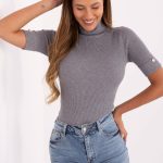 Casualowy sweter damski wykonany z elastycznej mieszanki wiskozy, poliestru i poliamidu, który zapewnia komfort i lekkość noszenia. Dekolt w serek nadaje sylwetce subtelnej elegancji, a krótki rękaw sprawia, że sweter doskonale sprawdza się w codziennych stylizacjach oraz do pracy. Urozmaicona faktura materiału dodaje całości interesującego charakteru, a standardowa długość pozwala na łatwe łączenie swetra z różnymi spodniami i spódnicami. Model bez zapięcia, prosty i uniwersalny, idealny do casualowych i biznesowych outfitów.