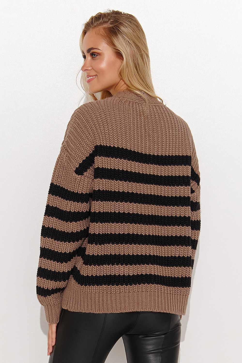 Sweter Damski Model S139 Cappuccino/Black – Makadamia