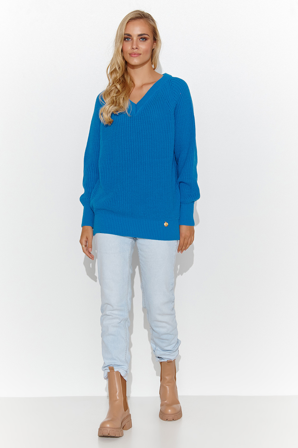 Klasyczny sweter damski to niezawodny element garderoby, który sprawdzi się w różnych sytuacjach. Dekolt w serek nadaje mu subtelności i elegancji, jednocześnie pozostając odpowiednio skromnym do noszenia na różne okazje. Luźny fason swetra zapewnia wygodę i swobodę ruchów, co sprawia, że jest doskonałym wyborem zarówno do pracy, na uczelnię, jak i na spotkanie ze znajomymi. Jednolity splot dodaje mu klasycznego charakteru, co czyni go uniwersalnym i łatwym do zestawienia z innymi elementami garderoby. Ozdobna złota blaszka to elegancki detal, który podkreśla jego wyjątkowość. Wybierz perfekcyjny kolor dla siebie i wyrażaj swoją osobowość!