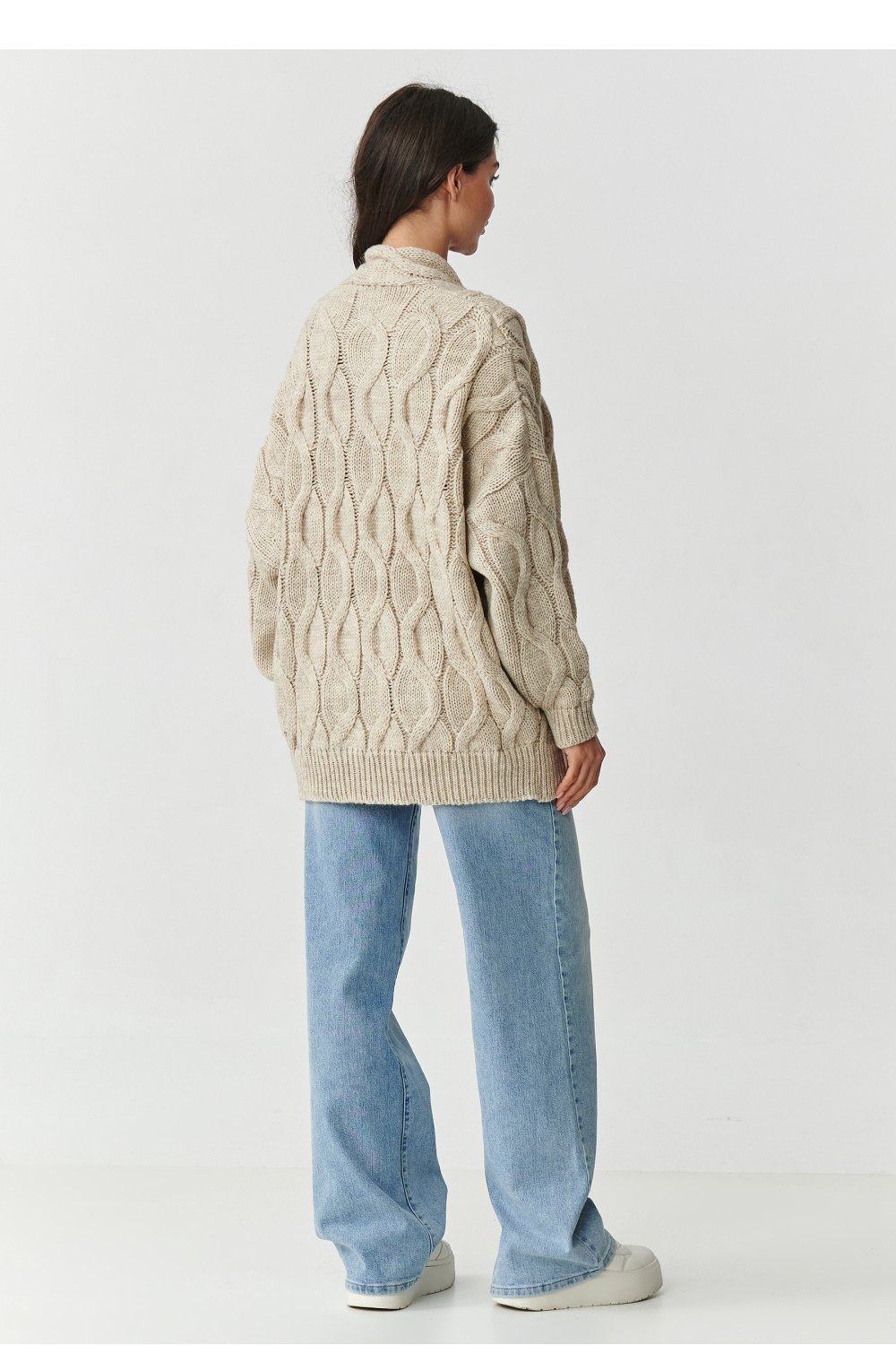 Stylowy, ciepły i niezwykle wygodny kardigan damski to must-have w każdej jesienno-zimowej garderobie. Wykonany z wysokiej jakości przędzy o składzie 85% akryl i 15% poliamid, zachwyca miękkością, trwałością i odpornością na deformacje. Charakterystyczny gruby splot w formie warkoczowych plecionek nadaje mu niepowtarzalnego charakteru i sprawia, że każda stylizacja wygląda modnie i przytulnie. Dzięki oversizeowemu krojowi sweter gwarantuje swobodę ruchów i komfort noszenia, a brak zapięcia sprawia, że można go łatwo zestawiać z T-shirtem, topem czy elegancką koszulą. To doskonała propozycja zarówno na co dzień, jak i na chłodniejsze wieczory. Kardigan dostępny jest w kilku bazowych odcieniach: beżowy melanż, cappuccino, czarny, grafitowy melanż oraz szary melanż, dzięki temu każda kobieta znajdzie kolor dopasowany do swojego stylu.