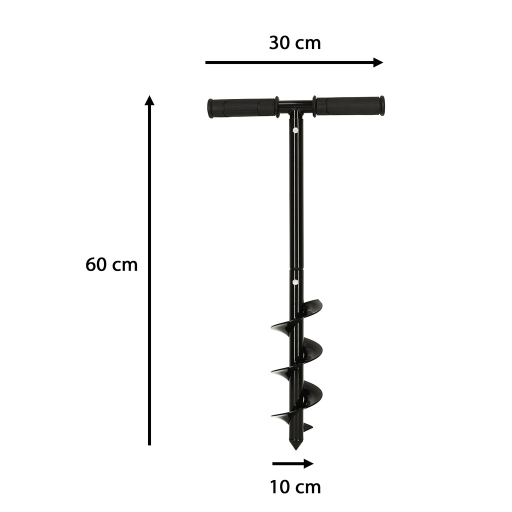 Ręczne wiertło ogrodowe – niezbędne narzędzie każdego ogrodnika i sadownika. pomocne podczas sadzenia kwiatów, warzyw, drzew i krzewów. Przydaje się również podczas mieszania gleby czy nawozu. Tworzywo: stal. Wymiary: 60 cm x 10 cm.