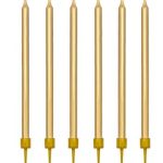 Świeczki urodzinowe na tort gładkie złote długie 12 sztuk 12,5cm