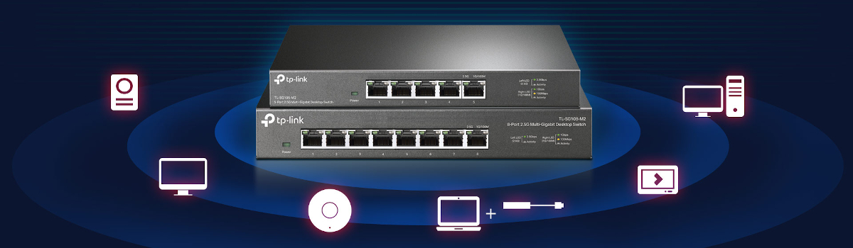 Flagowy przełącznik TP-Link wyposażony jest w 5 portów 2,5-gigabitowych, dzięki czemu pozwalają w pełni wykorzystać potencjał sieci o wielogigabitowej przepustowości oraz zaawansowanych technologicznie urządzeń, jednocześnie zapewniając 25 Gb/s przepustowości przełączania. Dostępność trzech różnych prędkości połączeń (100 Mb/1 G/2,5 G) z autonegocjacją umożliwia wykrywanie jakości łącza i inteligentnie dostosowywanie prędkości w celu zapewnienia optymalnego działania wszystkich urządzeń, w tym NAS 2,5 G, kart sieciowych PCIe, konsol do gier, sprzętu do obsługi gier VR, punktów dostępowych Wi-Fi 6 2,5 G i wielu innych.