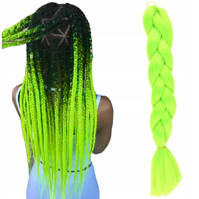 Syntetyczne włosy 120 cm gęste jednokolorowe limonka WLS43