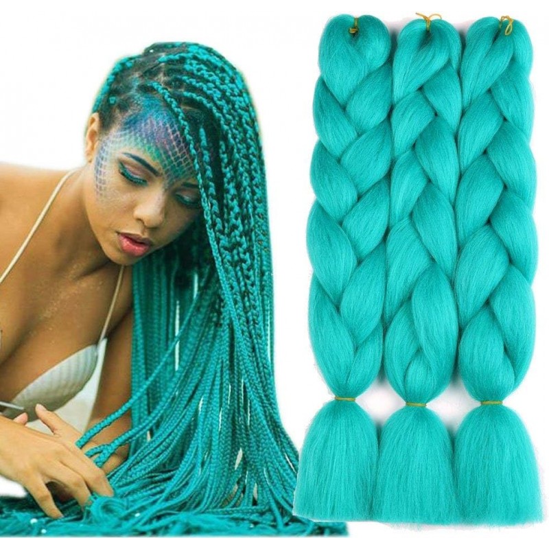 Syntetyczne włosy 120 cm gęste jednokolorowe turkus WLS10