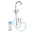 Głowica wkładu filtrującego wodę, Trójnik z zaworem, elastyczny wężyk, Uchwyt do montażu filtra wody na ścianie, Kran jednodrożny, Jeden wkład filtrujący D 1, poprawiający smak wody kranowej i redukujący jej nadmierną twardość, Elektroniczny, inteligentny wskaźnik LED wymiany wkładu filtrującego, Pasek do badania twardości wody