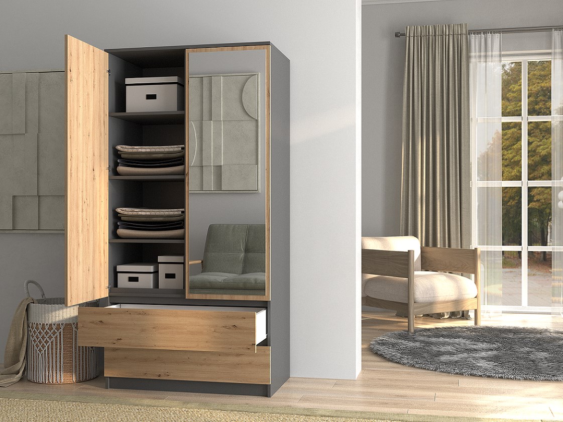 Szafa SS-90 LUSTRO 90x50xH180 antracyt/artisan