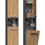 Obrzeża – wykończone tworzywem ABS (charakteryzującym się dużą wytrzymałością mechaniczną i chemiczną), Płyta wiórowa laminowana wyróżnia się odpornością na naprężenia mechaniczne i ekstremalne temperatury, Zdjęcia zestawów przedstawiają przykładową aranżację z innymi meblami z kolekcji. Pozostałe bryły są dostępne w osobnej sprzedaży., Meble do samodzielnego montażu, Możliwość wyboru strony otwierania drzwiczek – lewostronnie/prawostronnie - bezpośrednio przy montażu, Powierzchnię mebla czyścić przy pomocy miękkiej szmatki. Unikać stosowania silnie działających środków chemicznych