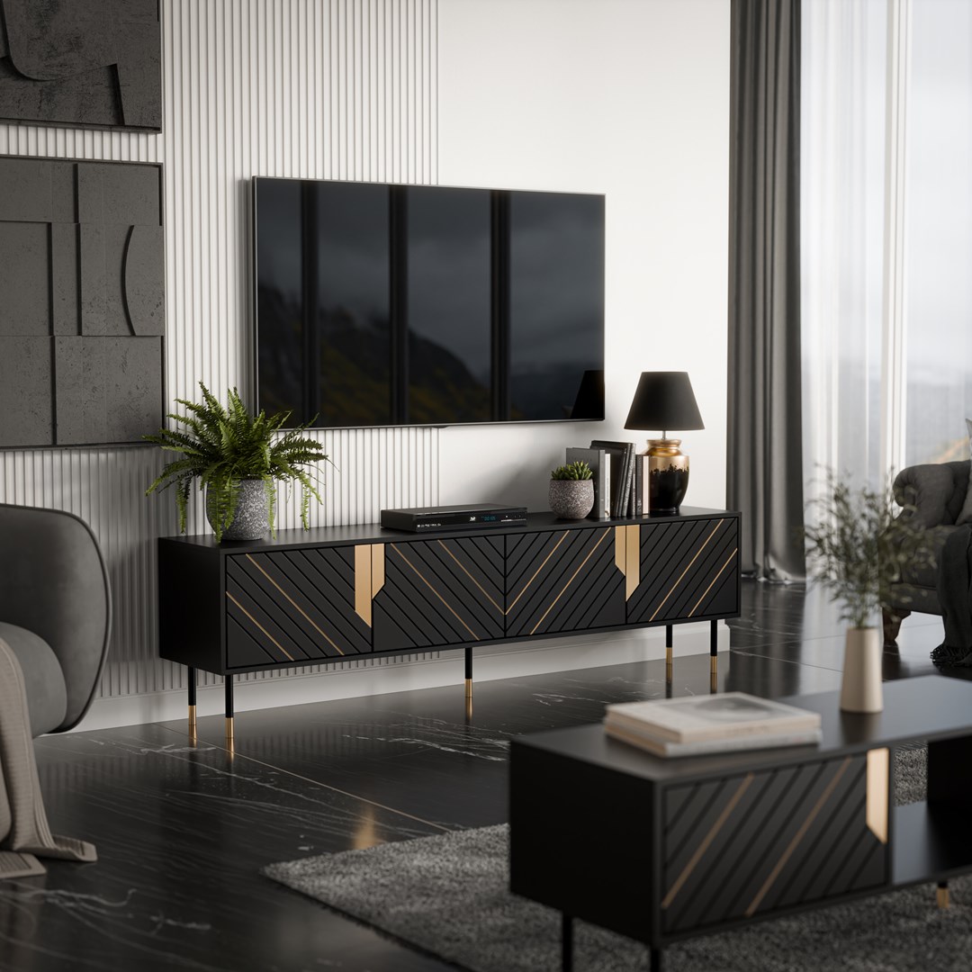 Szafka RTV 4D MOUNTAIN 204x40x55 czarny + złoty