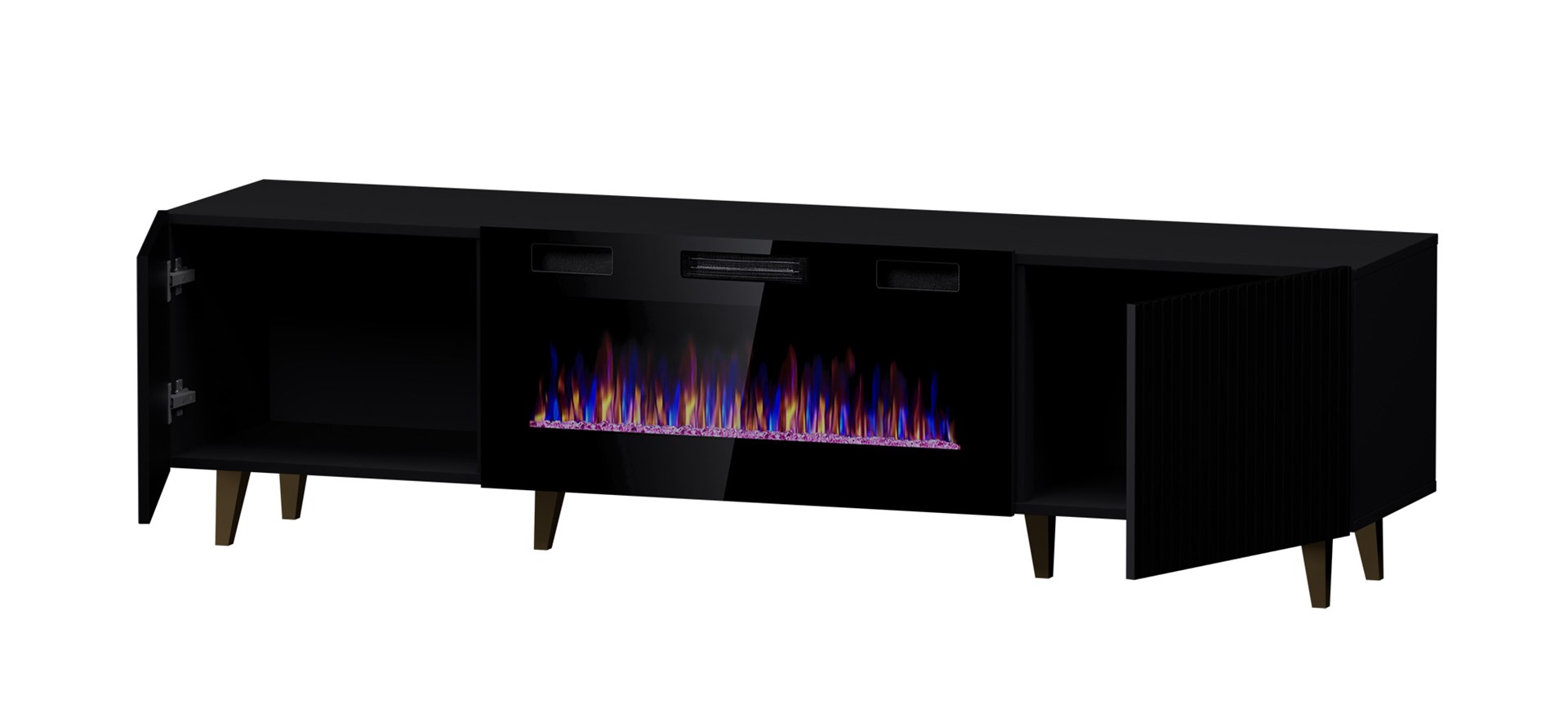 Szafka RTV PAFOS EF z kominkiem elektrycznym 180x42x49 czarny mat