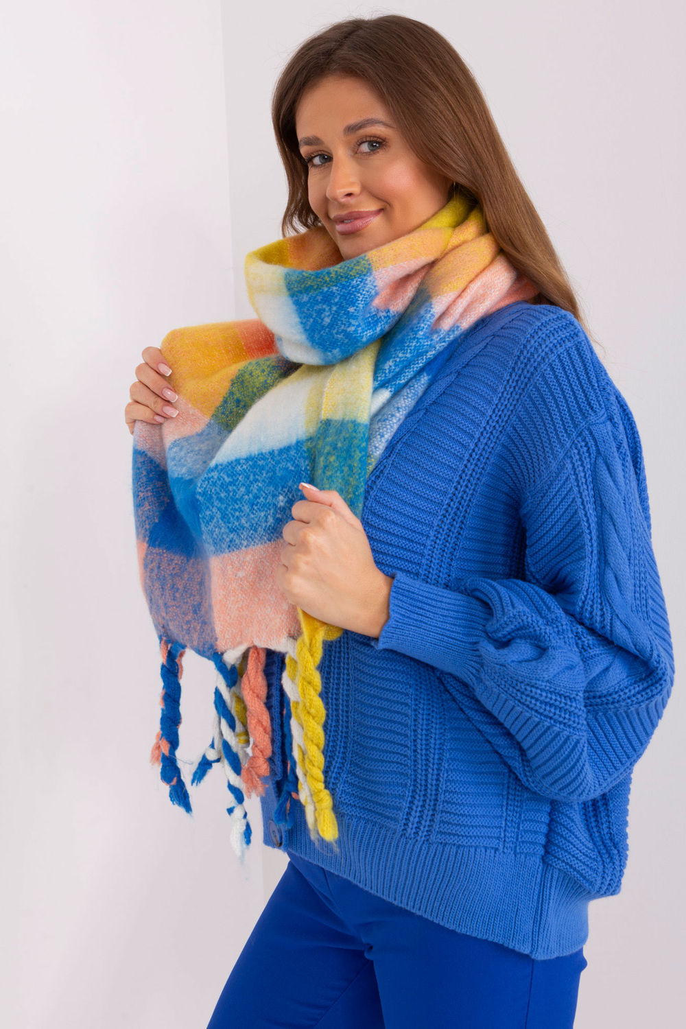 Ten długi szalik w kolorową kratę to doskonały dodatek do Twojej jesienno-zimowej garderoby. Wykonany z wytrzymałego poliestru, jest nie tylko praktyczny, ale także stylowy. Frędzle dodają mu subtelności i lekkości. Długość szalika pozwala na różnorodne sposoby jego noszenia, możesz go owijać wokół szyi, zostawić luźno opadający na ramiona lub użyć go jako dodatkowej warstwy w chłodniejsze dni. Niezależnie od tego, jak go nosisz, ten szalik będzie stylowym uzupełnieniem Twojej garderoby, dodając charakteru i ciepła.