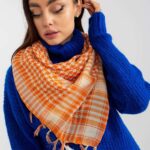 Ciepły długi szalik z ozdobnymi frędzlami, idealna propozycja na zimę.