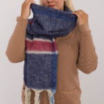 Ciepły długi szalik z ozdobnymi frędzlami, idealna propozycja na zimę.