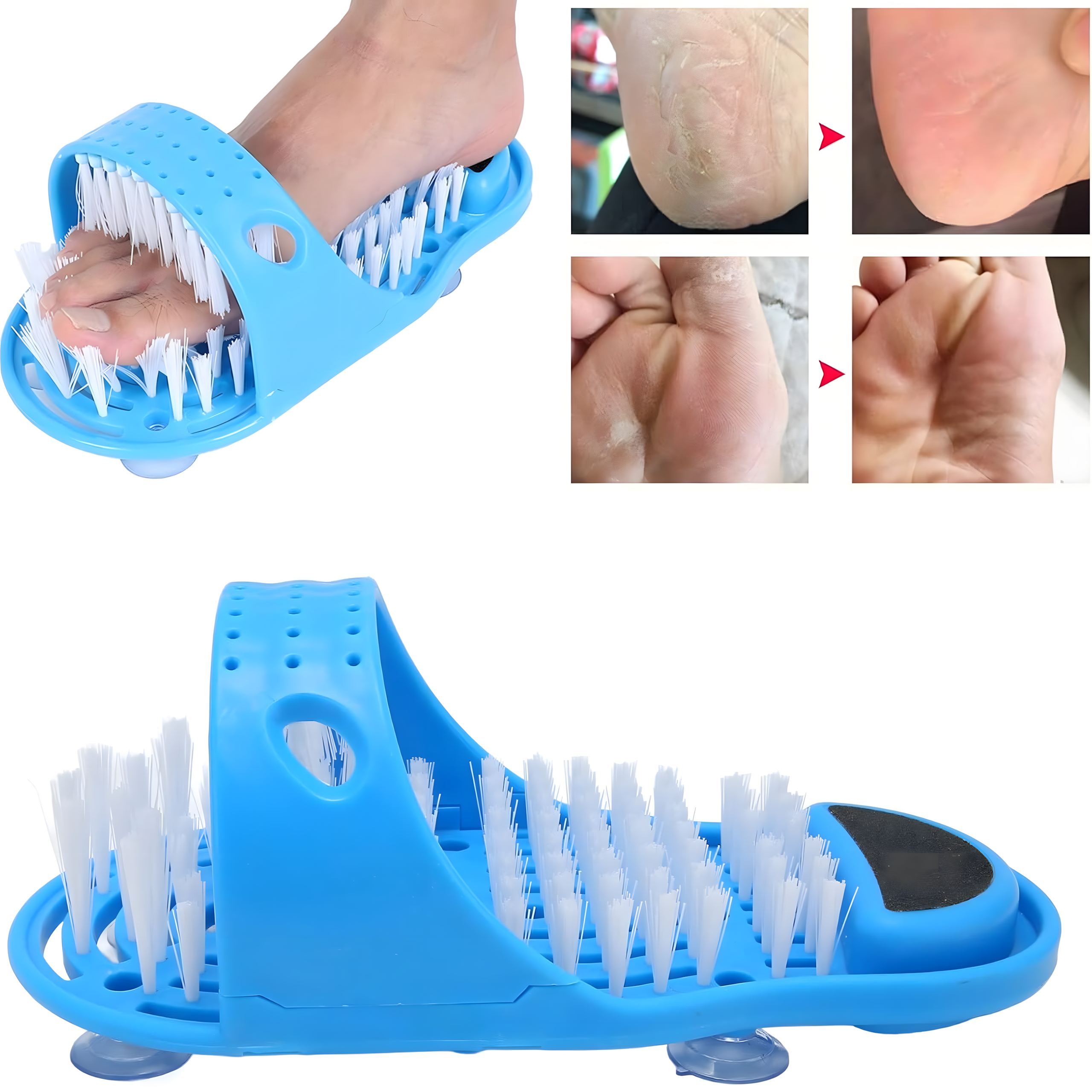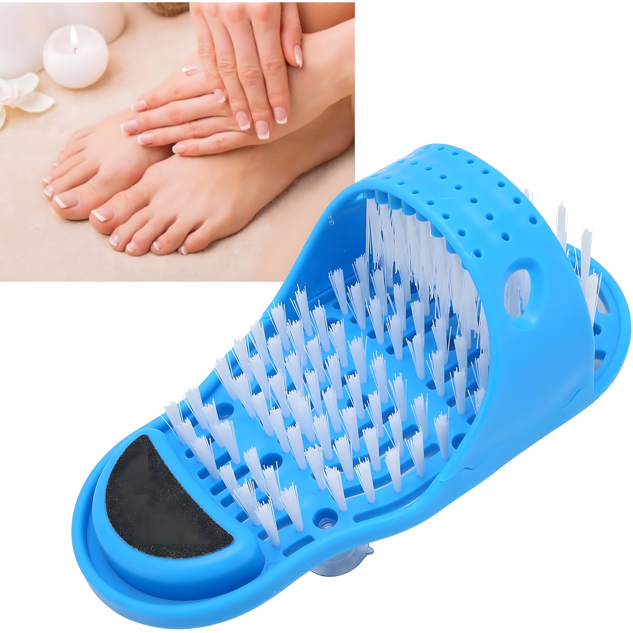 Szczotka myjka i masażer do mycia stóp z pumeksem – idealna pod prysznic dla łatwego i bezpiecznego oczyszczania stóp bez schylania się. Usuwa brud, martwy naskórek, masuje i zapobiega grzybicy. Mocne przyssawki zapewniają stabilność, a wbudowany pumeks pielęgnuje pięty.