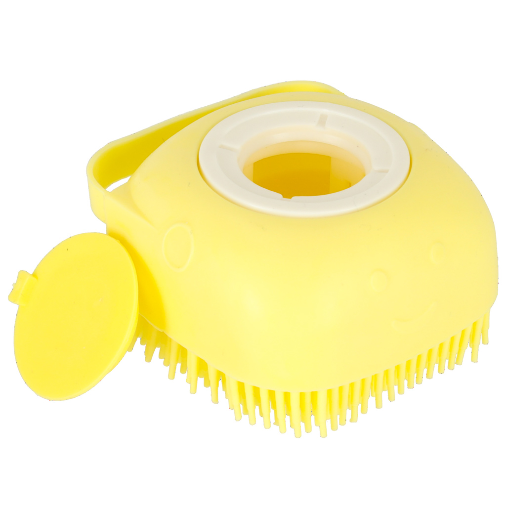 Szczotka silikonowa czyścik myjka do mycia psów kotów z dozownikiem żółta