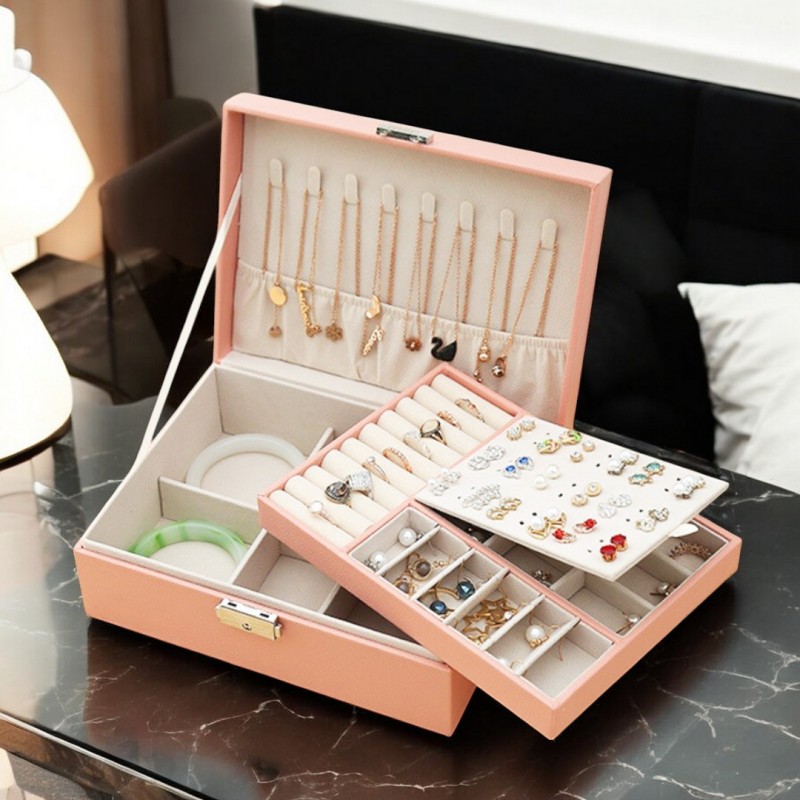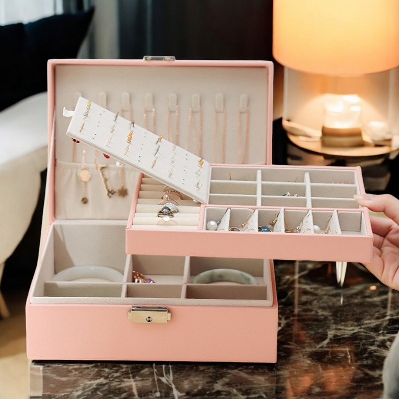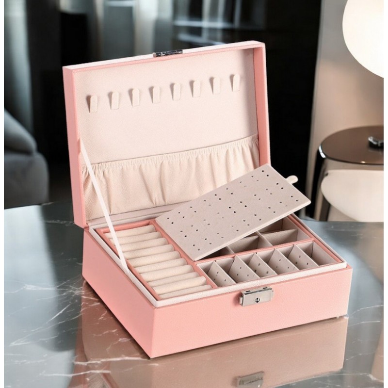 Bardzo funkcjonalna z przegródkami oraz miejscami na naszyjniki, kolczyki oraz pierścionki.