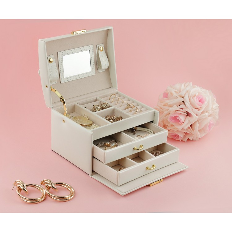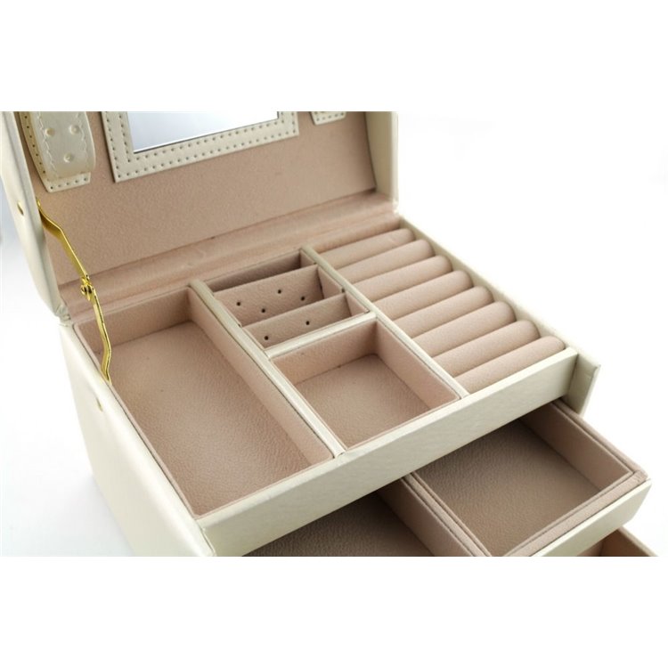 Szkatułka na biżuterię, kuferek w kolorze kremowym PD49K