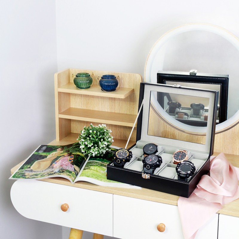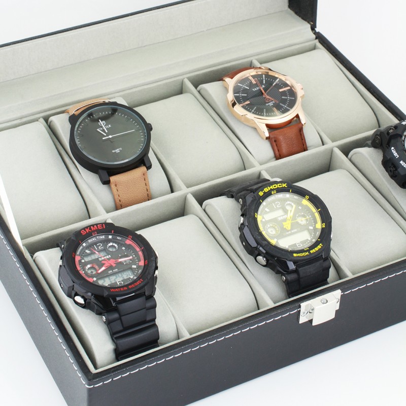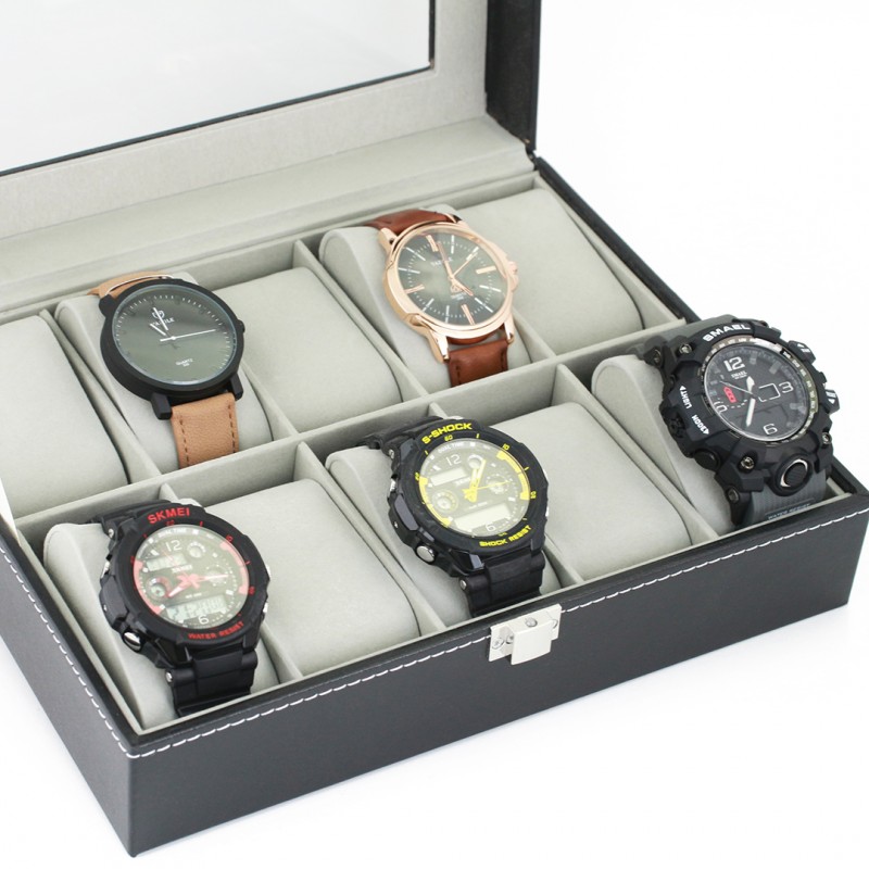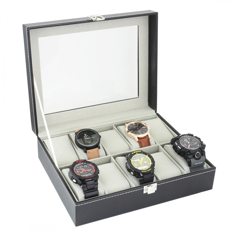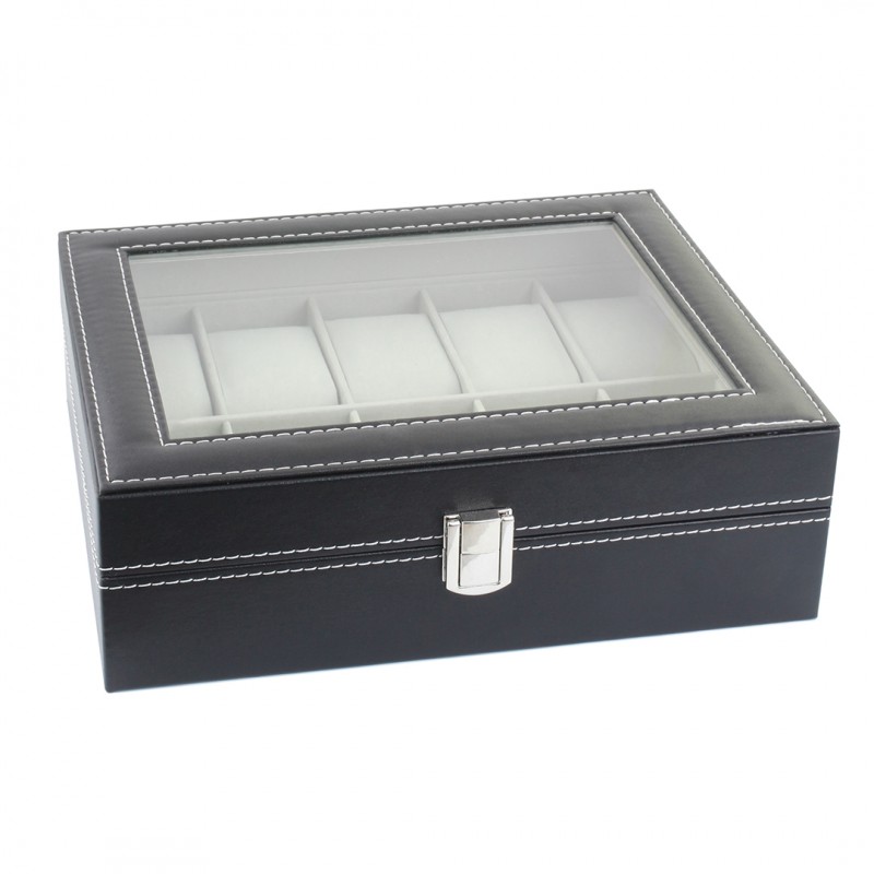 Przepiękna i niezwykle funkcjonalna szkatułka.Szkatułka idealnie nadaje się na prezent. Jest niezwykle praktyczna i doskonale chroni zegarki, biżuterię bądź bransoletki przed kurzem i zarysowaniami.Najważniejsze informacje:- wysokiej jakości wykonanie;- niewielkie rozmiary, ale bardzo funkcjonalny – pozwala wygodnie przechować 10 zegarków;- posiada solidny metalowy zamek;- zapewni najwyższą ochronę dla Twoich zegarków;- wykonana z eleganckiego materiału;- środek wypełniony miękkim pluszowym materiałem: