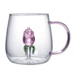 Szklanka termiczna ryflowana z kwiatami w środku, gipsówka róż 300 ml 1szt SZK157