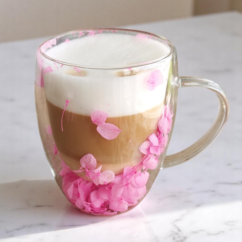 Szklanka termiczna z hortensją w środku róż 300 ml 1szt SZK77