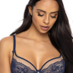 Kuszące i ponętnie prześwitujące szorty w całości wykonane z delikatnej koronki w kolorze khaki. Seksownie otulają kobiece wdzięki. Klinek bawełniany.