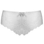 Kuszące i ponętnie prześwitujące figi w całości wykonane z delikatnej białej koronki. Seksownie otulają kobiece wdzięki. Klinek bawełniany.