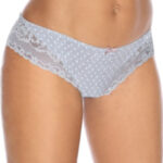 Kuszące i ponętnie prześwitujące figi w całości wykonane z delikatnej białej koronki. Seksownie otulają kobiece wdzięki. Klinek bawełniany.