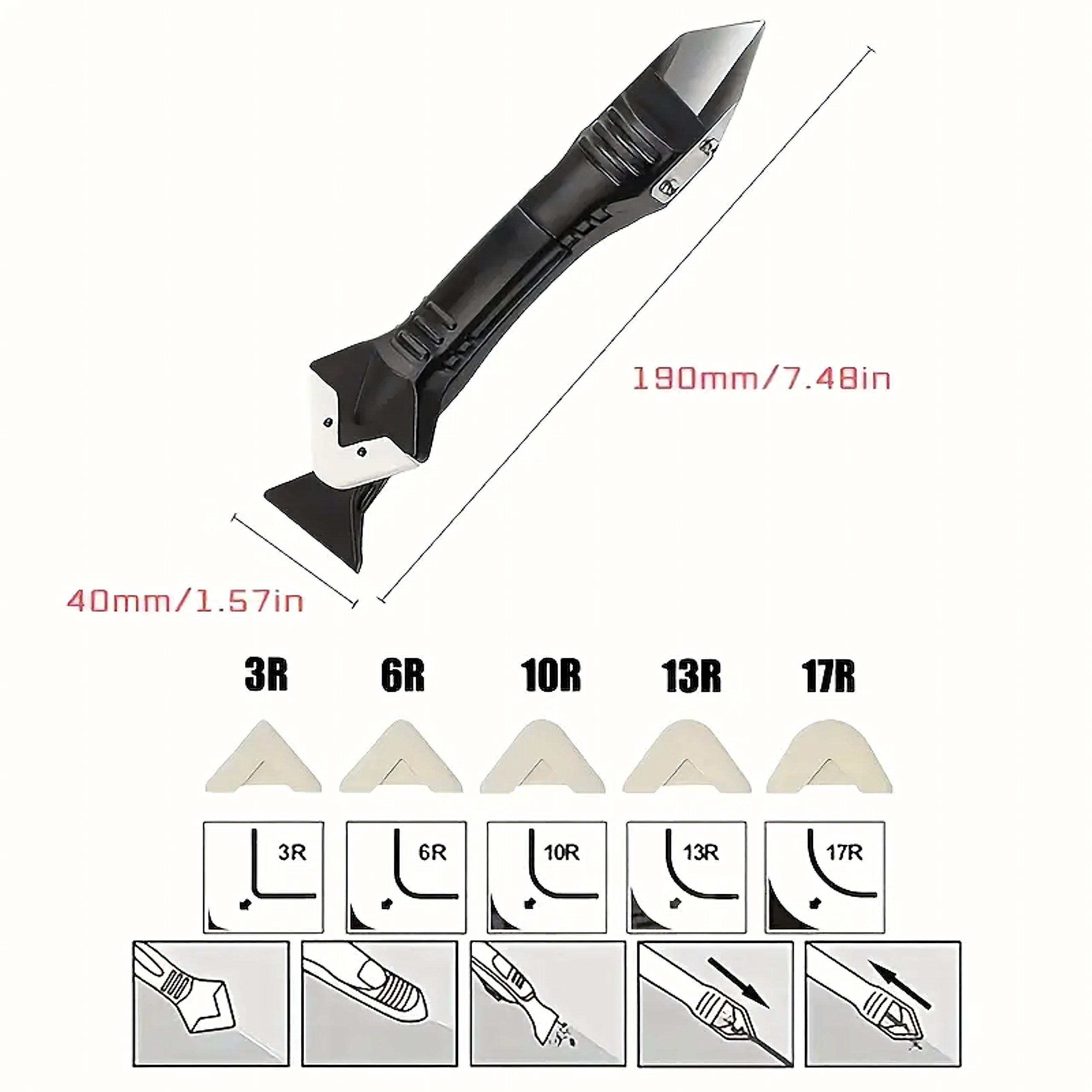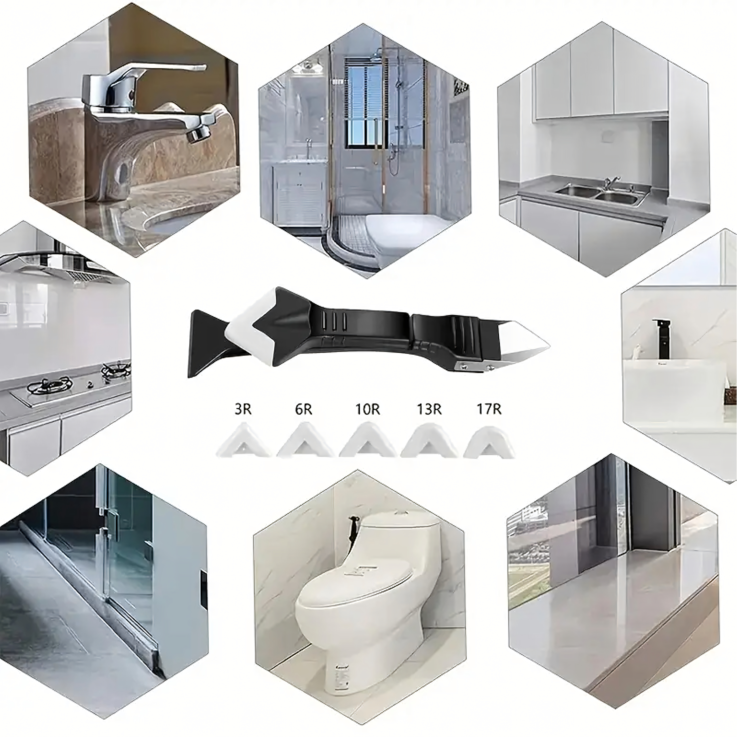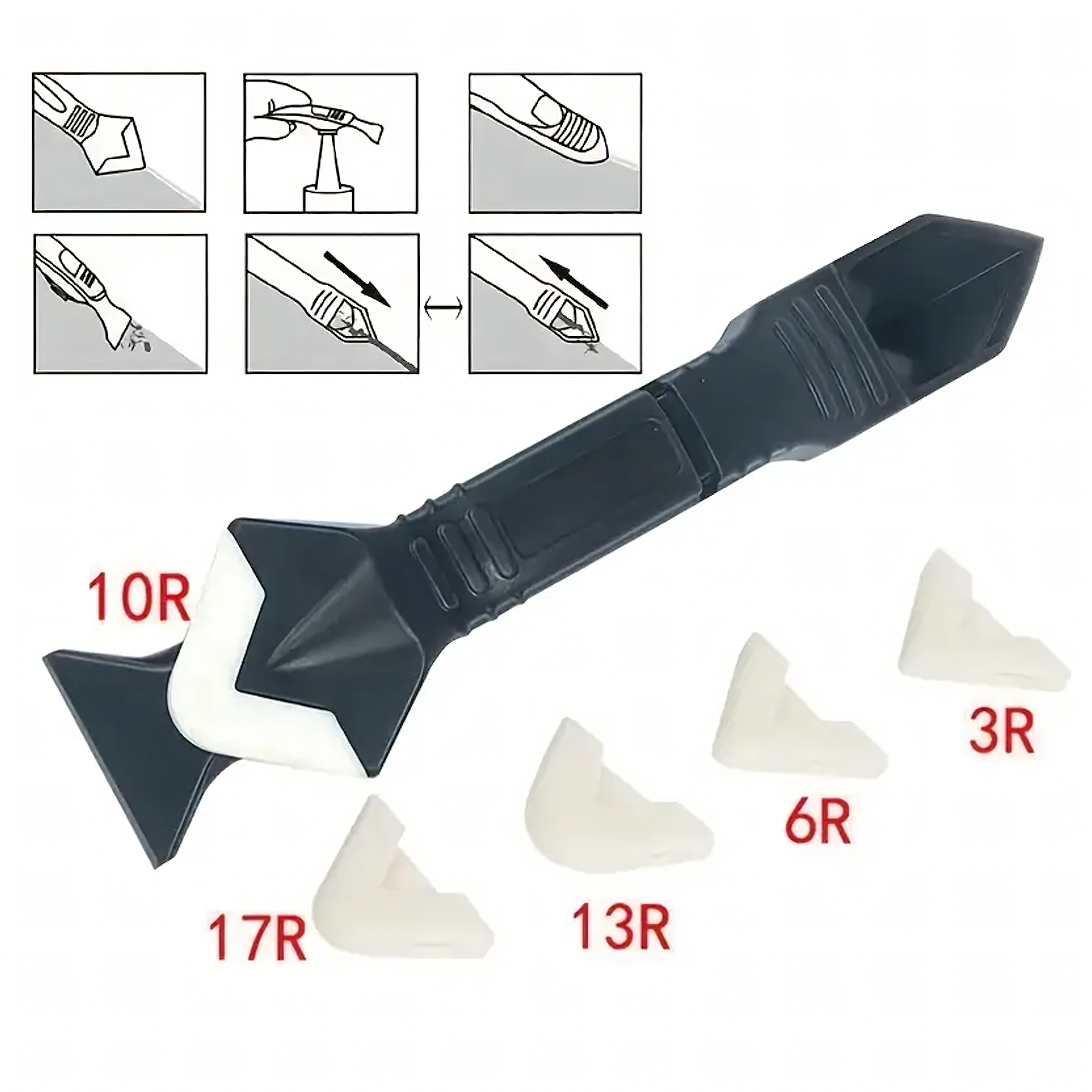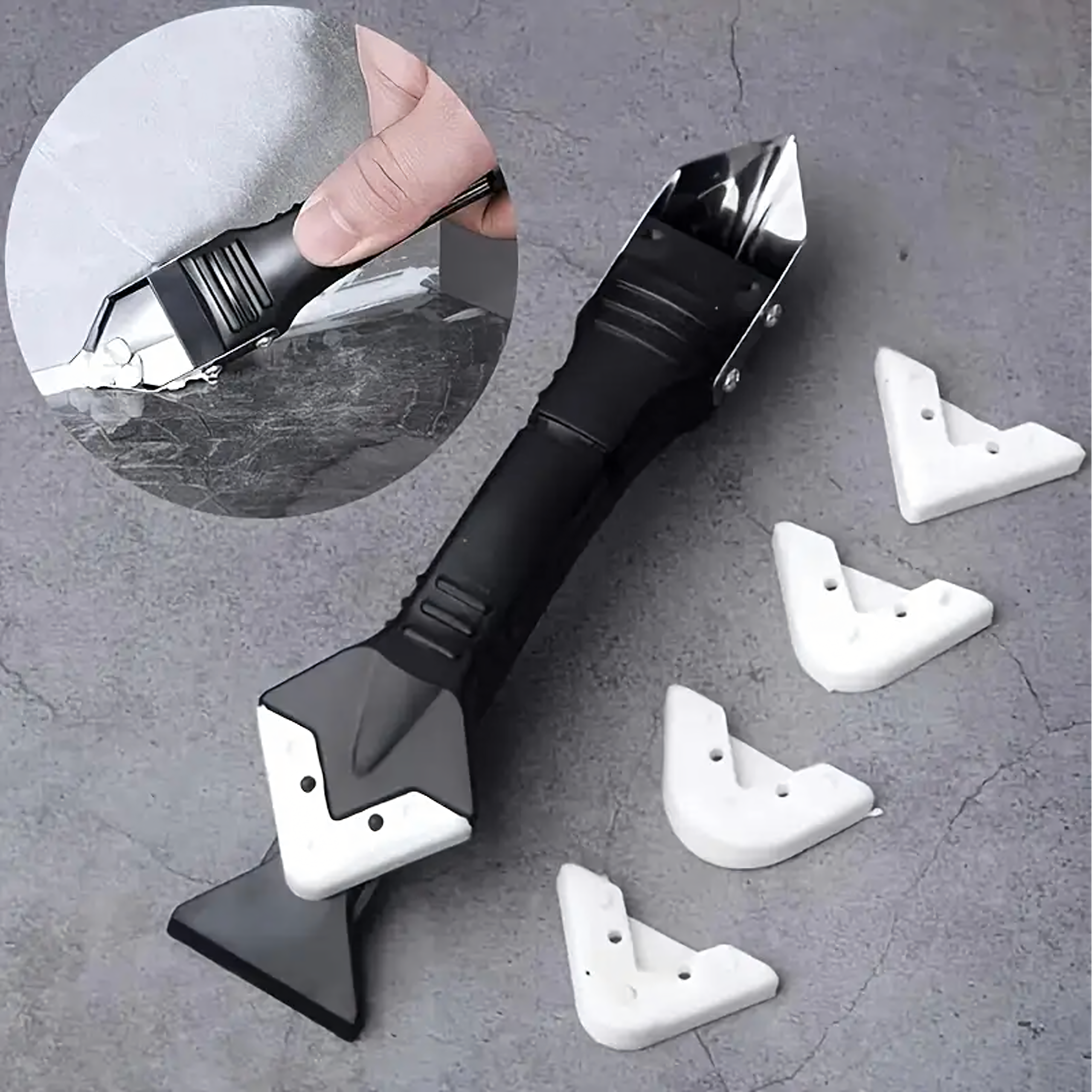 Szpachelka 5w1 do fug i silikonu – praktyczne narzędzie z 5 wymiennymi końcówkami do usuwania starych fug, silikonu, akrylu czy kleju. Ergonomiczny kształt zapewnia wygodę pracy, a bezpieczna konstrukcja umożliwia precyzyjne czyszczenie i nakładanie nowych spoin.