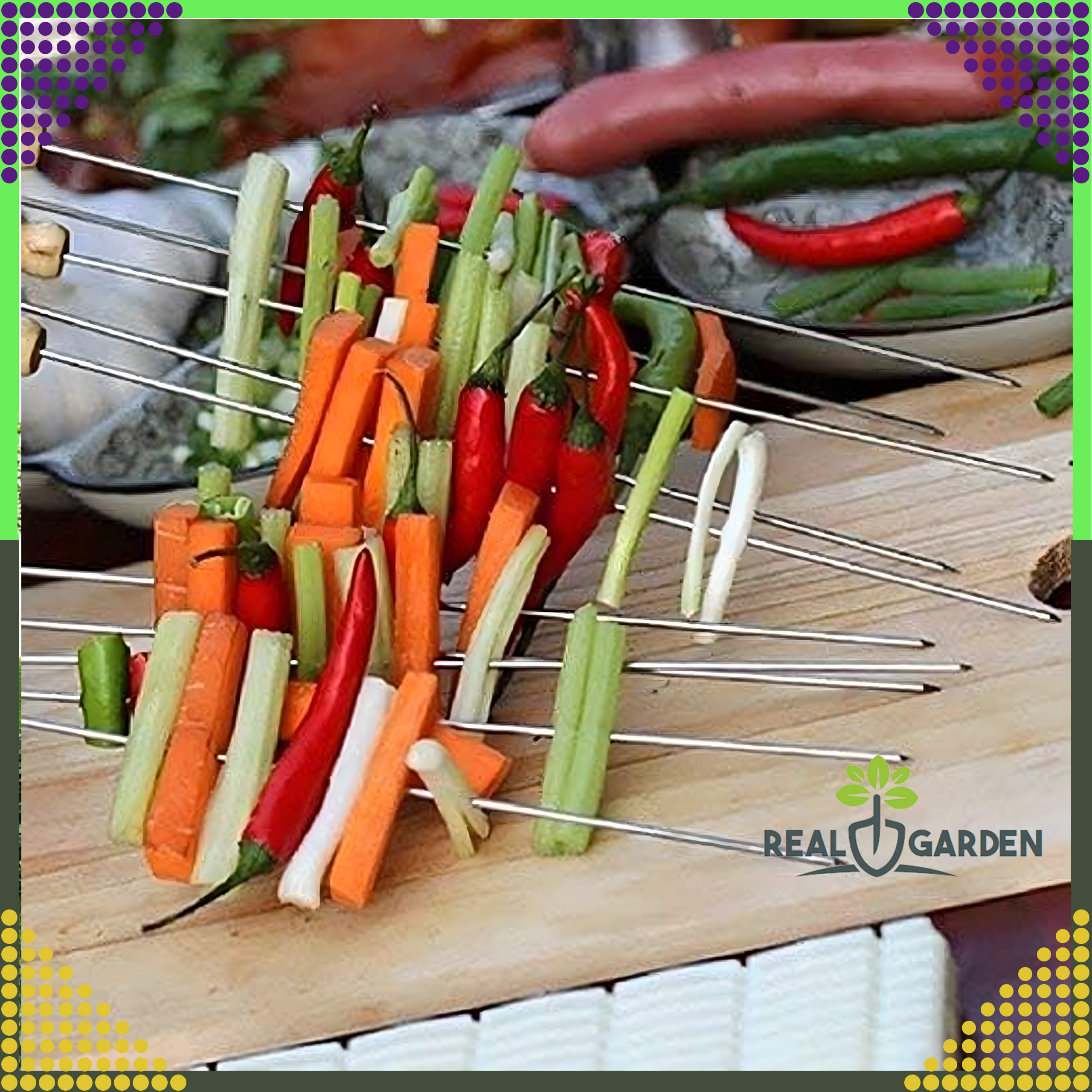 Zestaw stalowych szpikulców do przygotowywania szaszłyków z warzyw i mięsa. Łatwe w czyszczeniu i wygodne w użytkowaniu. Całkowicie bezpieczne dla zdrowia i neutralny dla żywności.