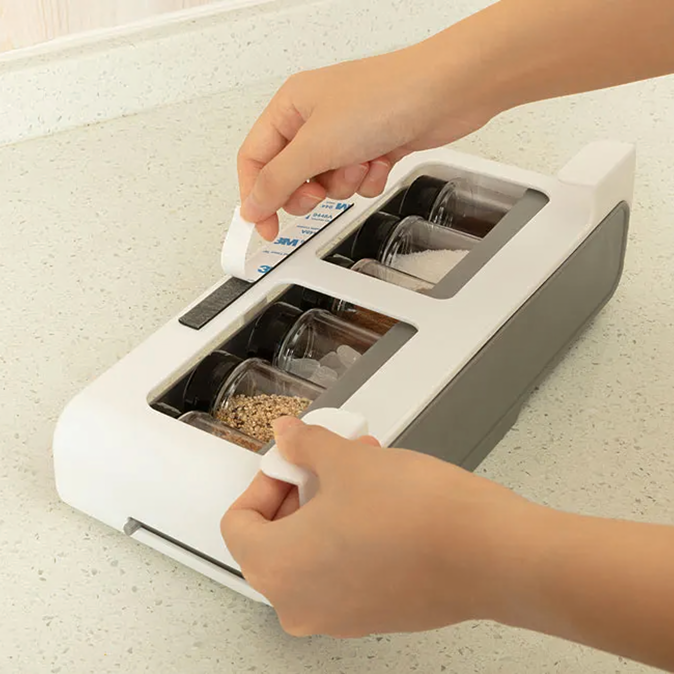 Szuflada Organizer na Przyprawy – 6 Słoiczków | Bez Wiercenia