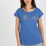 Tshirt damski z krótkim rękawkiem, dekolt w serek. Na przodzie ozdobny napis.