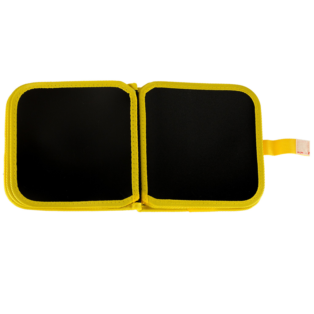 Miękka tablica kredowa w kształcie notesu. Przenośna książeczka z okładka w misie zapinana na rzep zachęci do zabawy każde dziecko. Zestaw zawiera 14 str przeznaczonych do malowania, 12 markerów kredowych, 2 ściereczki. Wymiary książeczki: 21x21x4 cm
