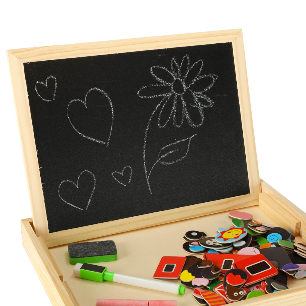 Drewniana tablica dwustronna z magnetycznymi puzzlami do układania