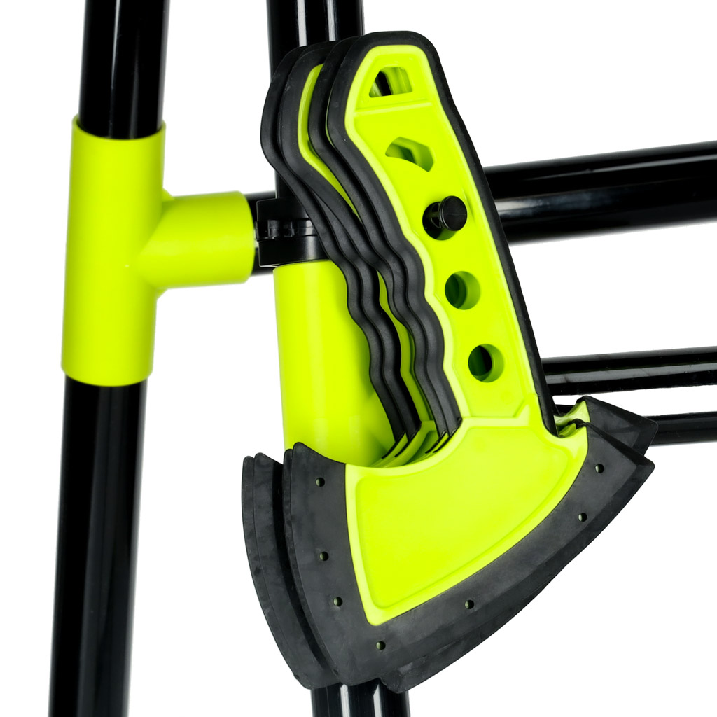 Stabilny, plastikowy stojak z uchwytami umożliwia łatwe przechowywanie