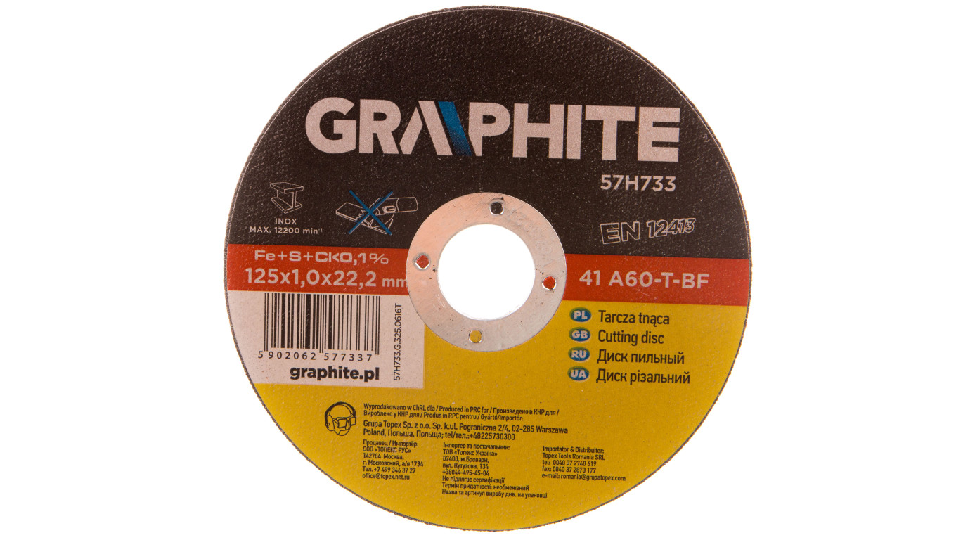 Tarcza tnąca do metalu 125×1.0x22.2mm, 41 A60-T-BF, INOX /10szt./ 55H572