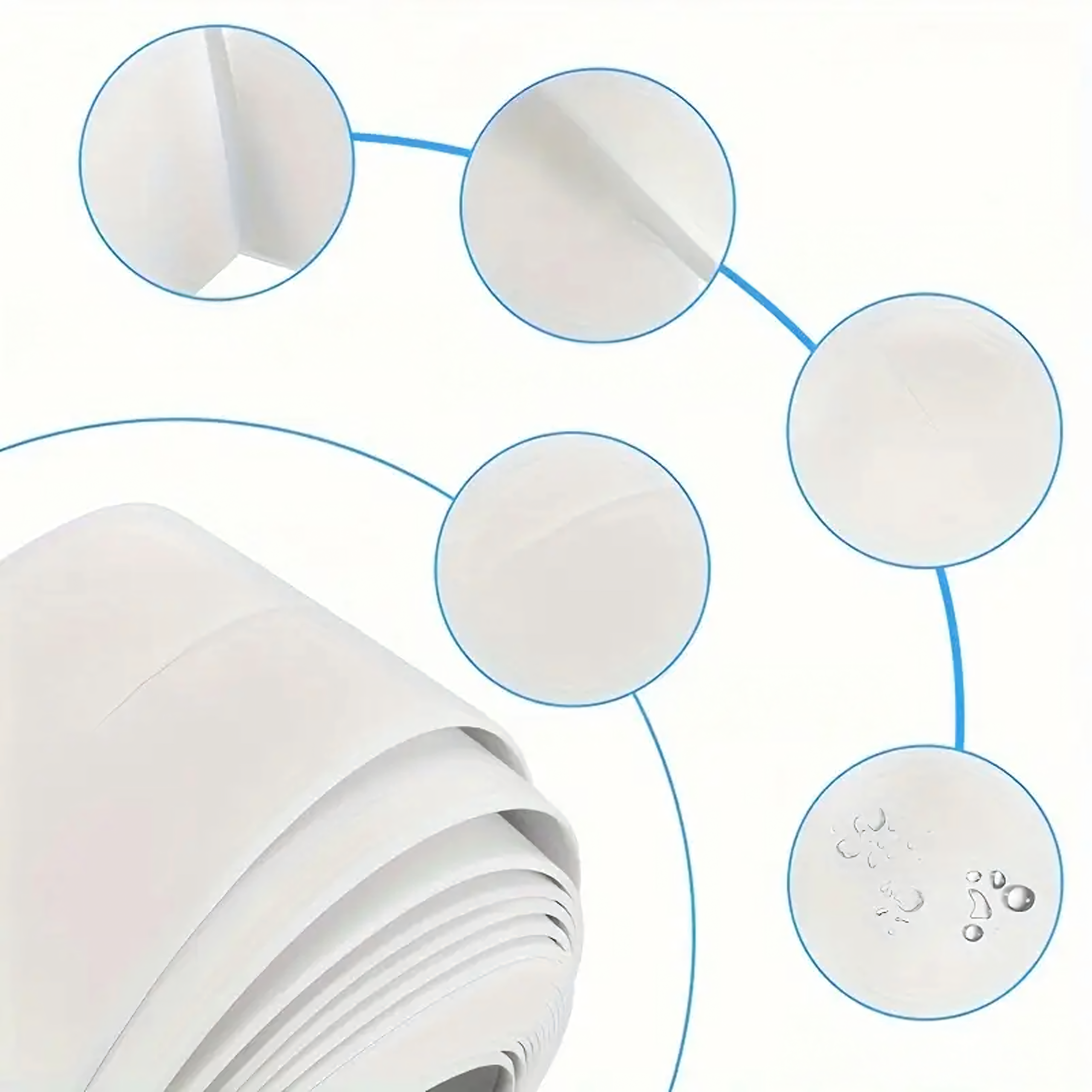 Taśma wodoszczelna uszczelniająca 3,7 cm × 1,5 m – idealna do łazienki i kuchni. Chroni przed wilgocią, pleśnią i zabrudzeniami, a dzięki elastycznemu materiałowi łatwo dopasowuje się do różnych powierzchni. Prosta w montażu, trwała i estetyczna – niezastąpiona przy wannie, brodziku, umywalce czy zlewie.