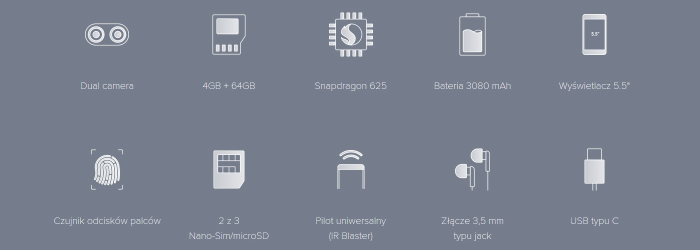 | Dodatkowe informacje | Dual SIM, radio FM, Bluetooth 4.2 |