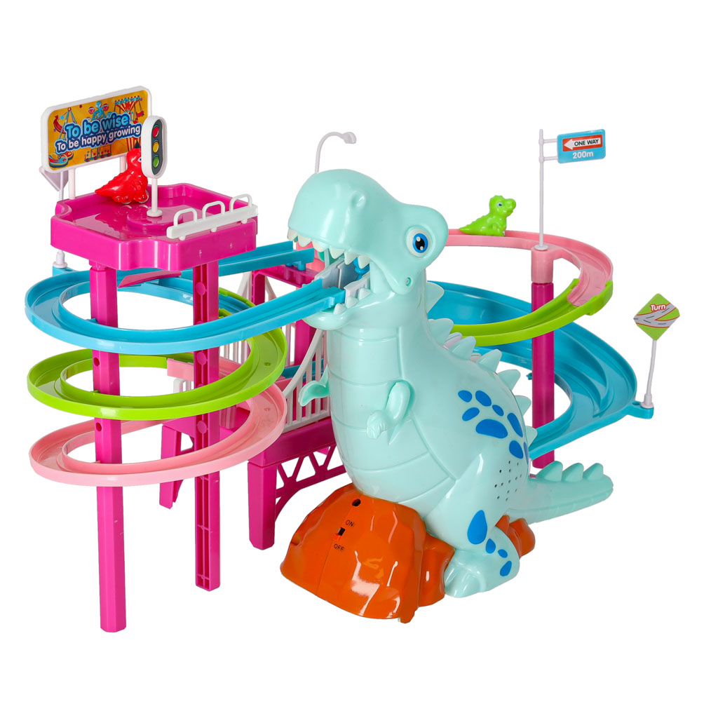 Tor wyścigowy dinozaur zjeżdżalnia ruchome schody LED dźwięk