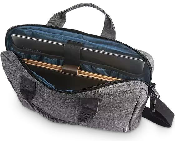 Torba Lenovo Casual Toploader T210 na laptopa z ekranem o przekątnej 15,6 cala cechuje się wodoodporną tkaniną i opływowym kształtem, dzięki czemu idealnie wpasowuje się w wymagania współczesnego życia. Jest wyposażony w zintegrowaną komorę, w której bez trudu zmieści się większość laptopów z ekranem o przekątnej do 15,6 cala. Ma też wiele wewnętrznych kieszeni na niezbędne akcesoria oraz przestronną komorę główną na książki i inne rzeczy. Posiada zintegrowany pasek bagażowy