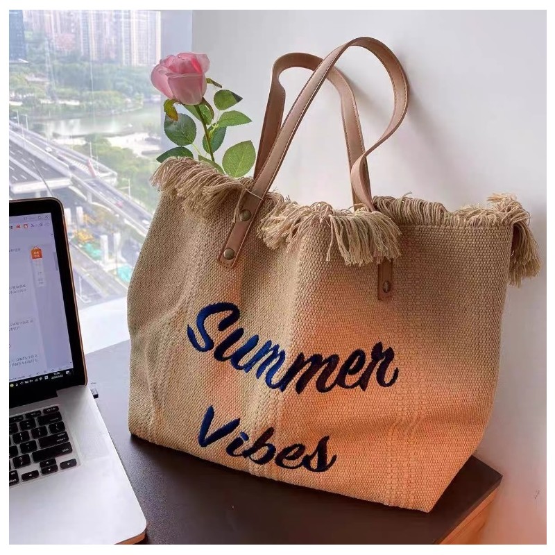 Materiałowa torba plażowa Wykonana z wytrzymałego i grubego płóciennego materiału