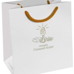 Torebka komunijna biała ze złotym nadrukiem oraz złotym sznurkiem