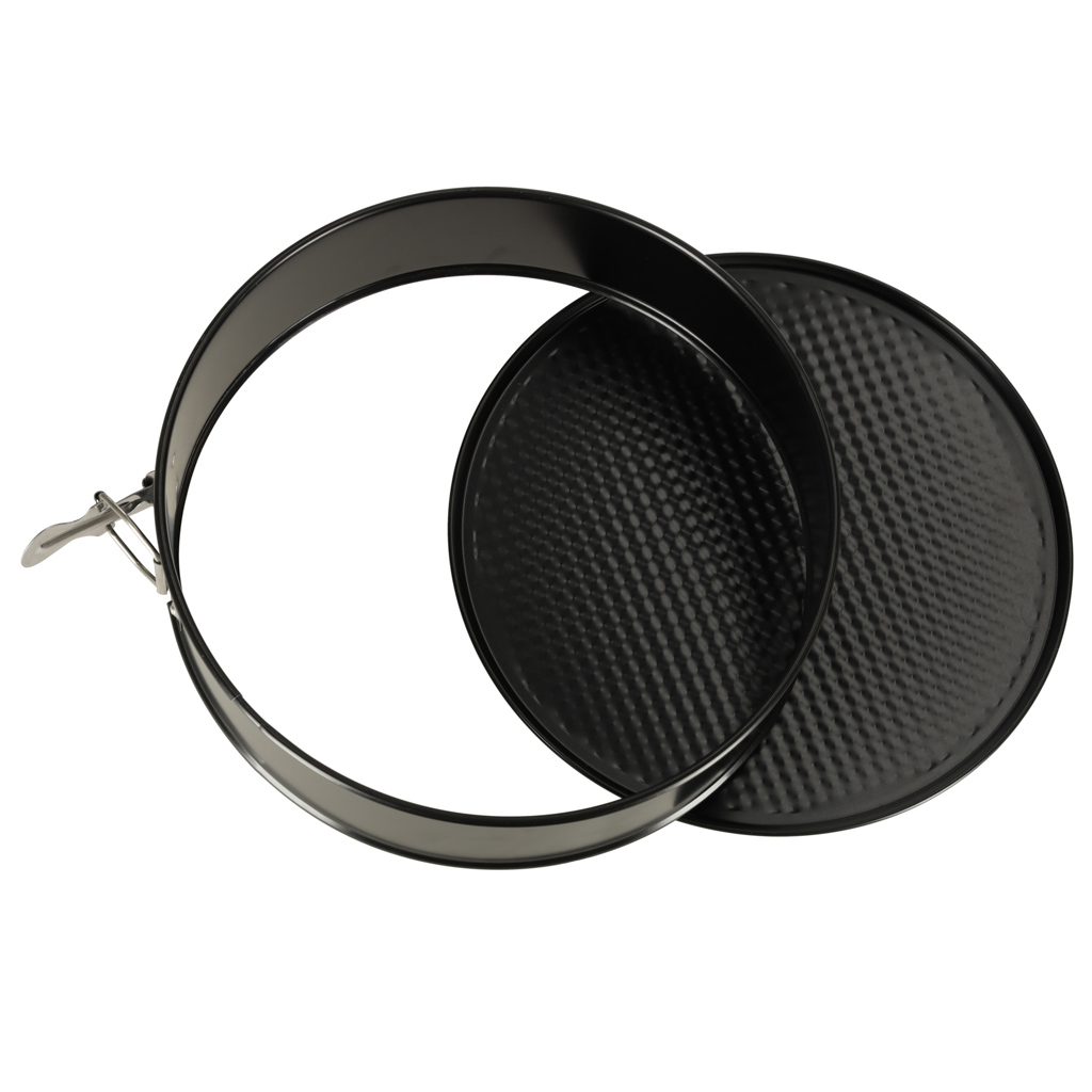 Okrągła forma do pieczenia z odpinanym rantem – doskonała do wypieku tortów i innych słodkości. Przeznczona do użytkowania w piekarnikach elektrycznych i gazowych. Kolor: czarny. Średnica: 24 cm. Tworzywo: stal niskowęglowa z powłoką non-stick.