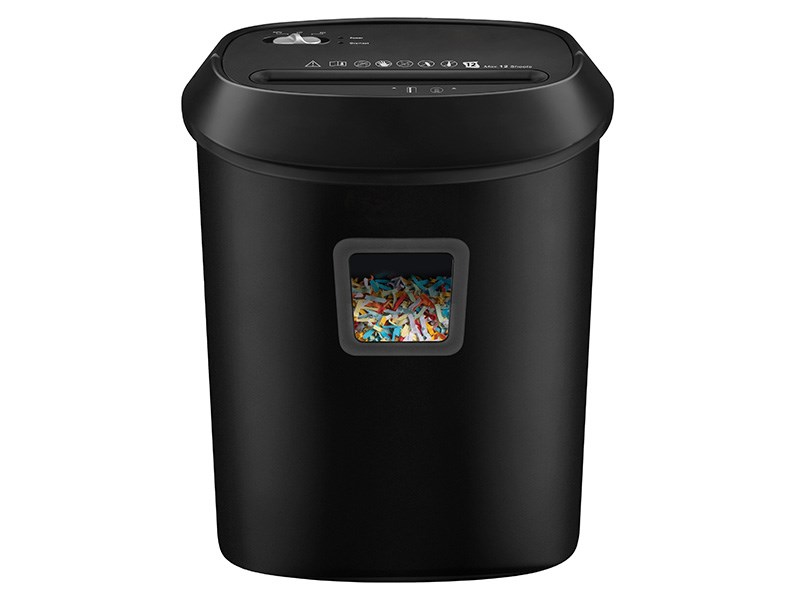 Odłączyć urządzenie od zasilania przed czyszczeniem lub konserwacją., Trzymać z dala od dzieci., Nie wkładać rąk, włosów ani luźnej odzieży do otworu niszczarki.