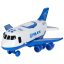 Zestaw pojazdów policyjnych w samolocie z ruchomymi elementami. Komplet zawiera transporter, ciężarówkę, auto miejskie i 7 znaków drogowych. Samolot posiada cztery sygnały dźwiękowe i diody LED. Wymiary: samolot – 30x25x14cm, auta – 7,5×2,5×2,5cm.