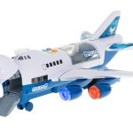 Duży samolot transporter. Zabawka rozwija koordynację oraz zręczność dziecka. Kabinę samolotu można otwierać i ładować samochodami. W zestawie m.in.: samolot, auta budowlane, naklejki. Zasilanie: 3x 1,5v AA (brak w zestawie). Wym. samolotu: 39x31x14cm.