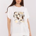 Damski t-shirt w stylu casual to idealna propozycja na codzienne stylizacje z nutą błysku. Wykonany z miękkiej i elastycznej mieszanki bawełny oraz elastanu, zapewnia wygodę noszenia i świetne dopasowanie do sylwetki. Model o standardowej długości z krótkim rękawem i kobiecym dekoltem w serek. Na przodzie znajduje się efektowny nadruk z aplikacją, ozdobiony subtelnymi cyrkoniami, które dodają bluzce wyjątkowego charakteru i delikatnego połysku. Ten t-shirt to połączenie komfortu i stylu, doskonały wybór na co dzień, który z łatwością urozmaici każdą casualową stylizację.