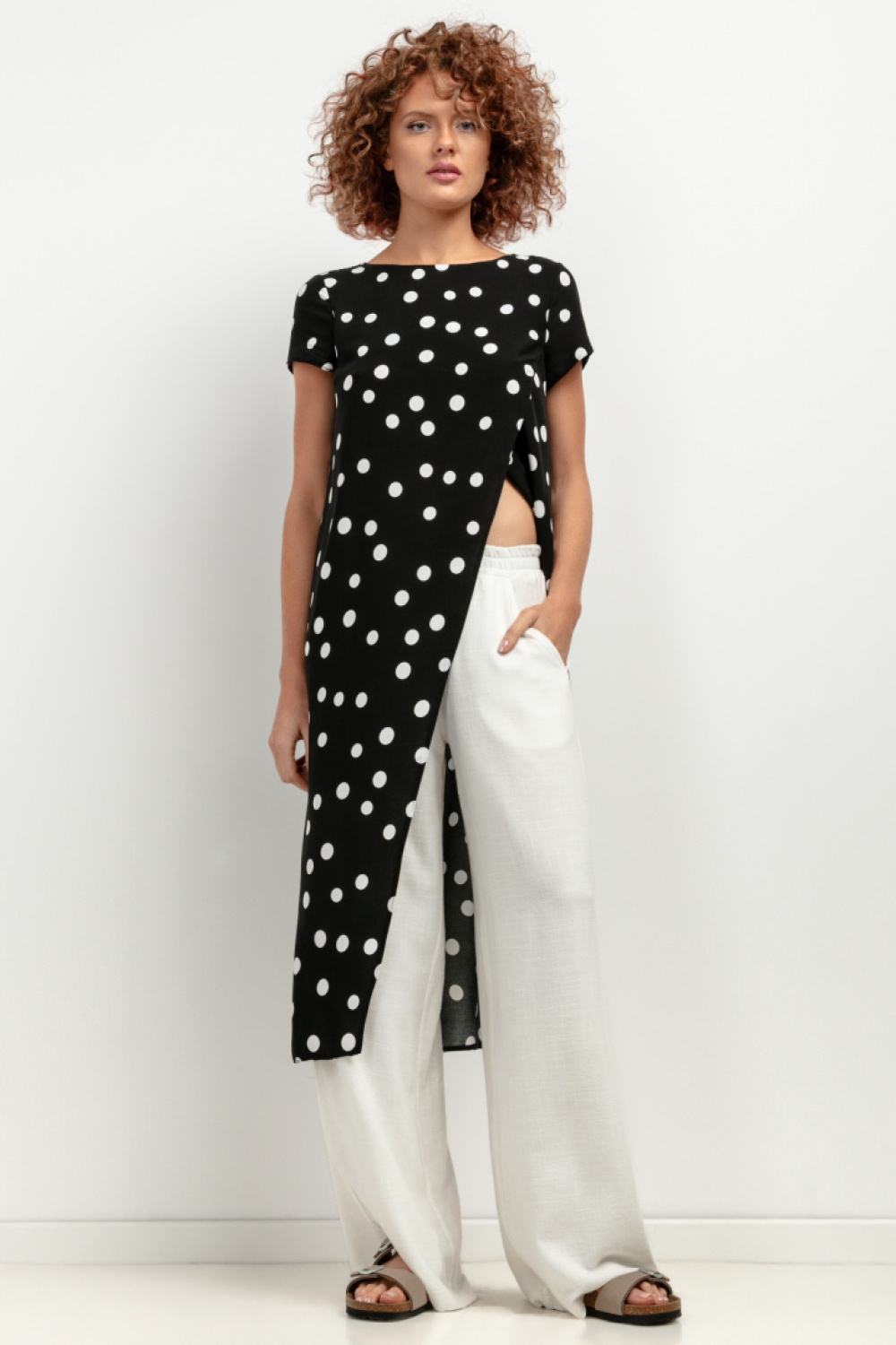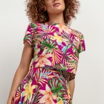 Tunika z wiskozy T410 to niezbędny element letniej garderoby każdej kobiety, która ceni sobie styl i wygodę. Dzięki wzorzystemu designowi nadaje się doskonale na plażę, ale również sprawdzi się podczas letnich wieczorów czy spacerów po mieście. Oryginalny fason oraz przewiewny materiał sprawiają, że narzutka jest lekka i komfortowa w noszeniu, idealna do noszenia zarówno na kostiumie kąpielowym, jak i na codziennych ubraniach. Wykonana z 100% wiskozy tunika gwarantuje najwyższą jakość materiału, co przekłada się na trwałość produktu oraz komfort użytkowania. Wiskoza jest naturalnym włóknem roślinnym o bardzo przyjemnej dla skóry fakturze, dzięki czemu narzutka zapewnia uczucie miękkości i delikatności nawet podczas upalnych dni. Doskonale układa się na sylwetce, dodając elegancji i lekkości każdemu outfitowi. Dzięki swojej uniwersalności tunikę z łatwością dopasujesz do różnorodnych stylizacji, od casualowych po bardziej eleganckie. Wystarczy założyć ją na ulubiony strój lub kostium kąpielowy, aby dodać mu świeżości i oryginalnego charakteru. Ponadczasowy wzór sprawia, że będzie ona modna przez wiele sezonów letnich, świetnie prezentując się zarówno nad morzem jak i w miejskich parkach. Tunika z wiskozy T410 to absolutne must-have tego lata! Jej lekki materiał oraz oryginalny design sprawią, że poczujesz się swobodnie i kobieco bez względu na okoliczności. Niech ta wyjątkowa narzutka stanie się Twoim ulubionym elementem letniej garderoby – idealnym uzupełnieniem letnich stylizacji oraz nieocenionym sojusznikiem podczas gorących dni!