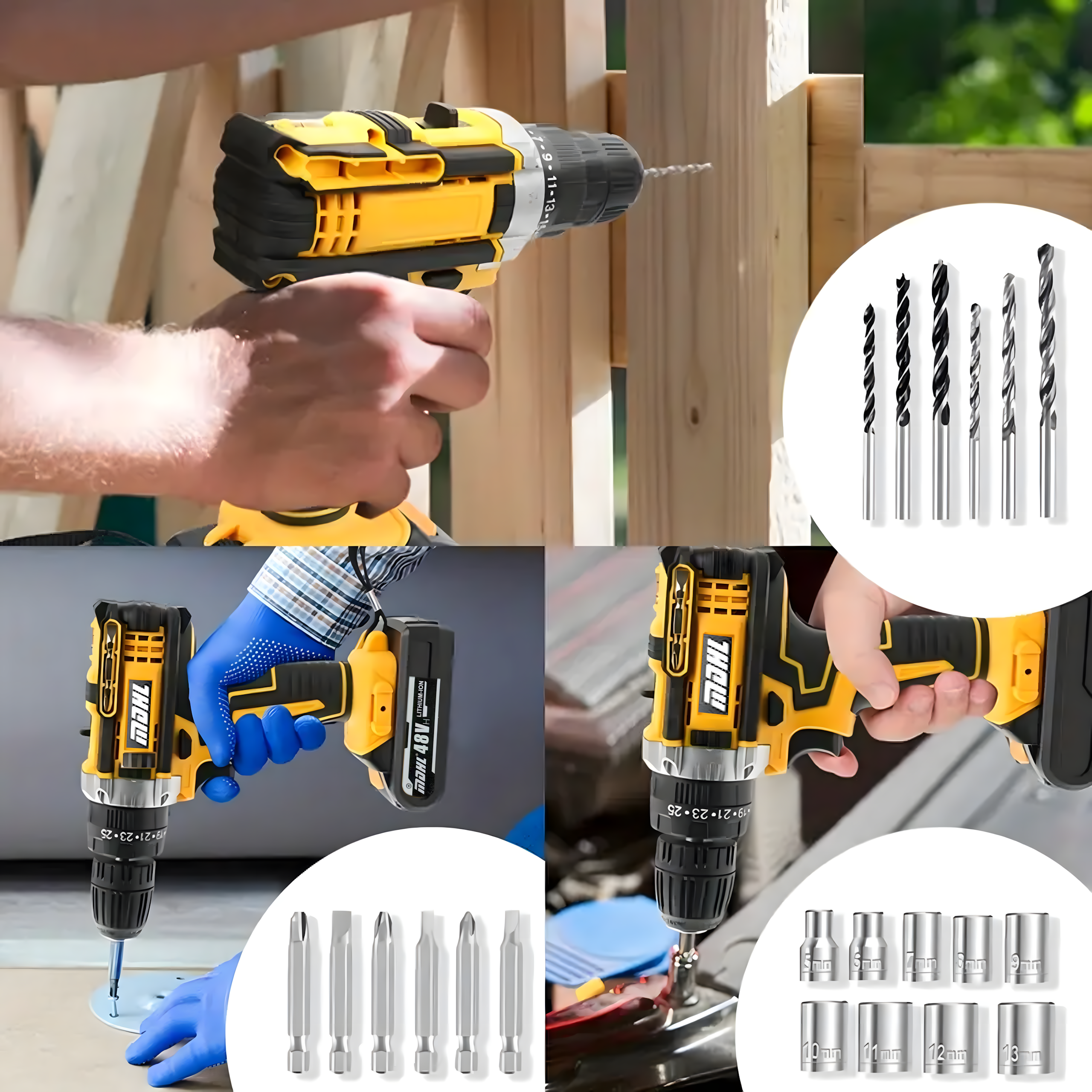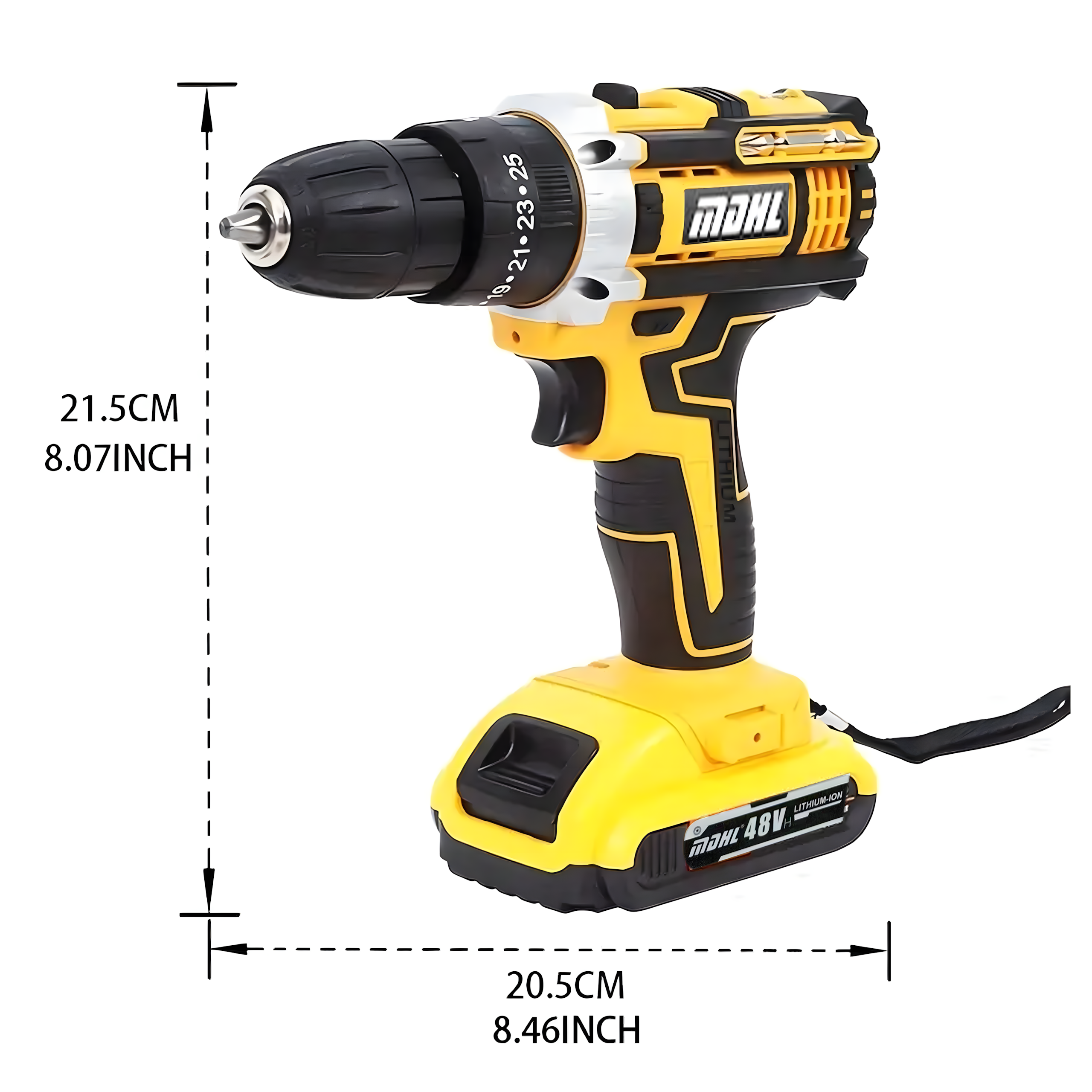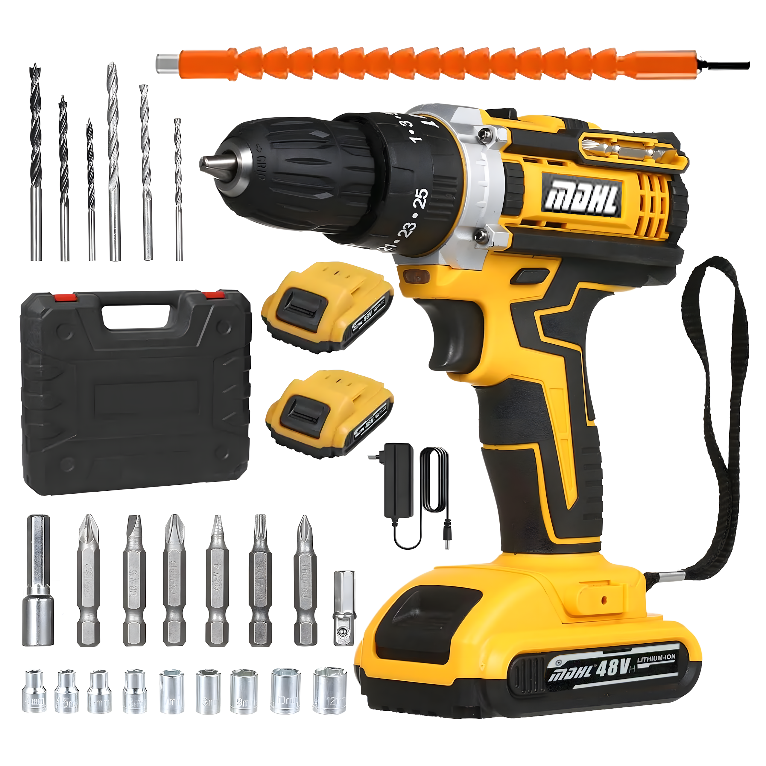 Profesjonalna wiertarko-wkrętarka akumulatorowa 48V to niezawodne narzędzie do wiercenia i wkręcania w różnych materiałach – od drewna, przez metal, aż po beton i cegłę. Wyposażona w 2 akumulatory 6500 mAh, moment obrotowy 35 Nm oraz podświetlenie LED, gwarantuje komfortową i wydajną pracę w każdych warunkach.