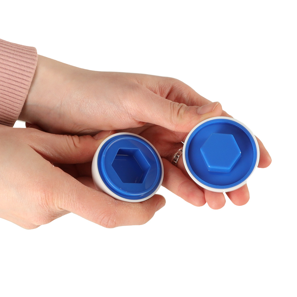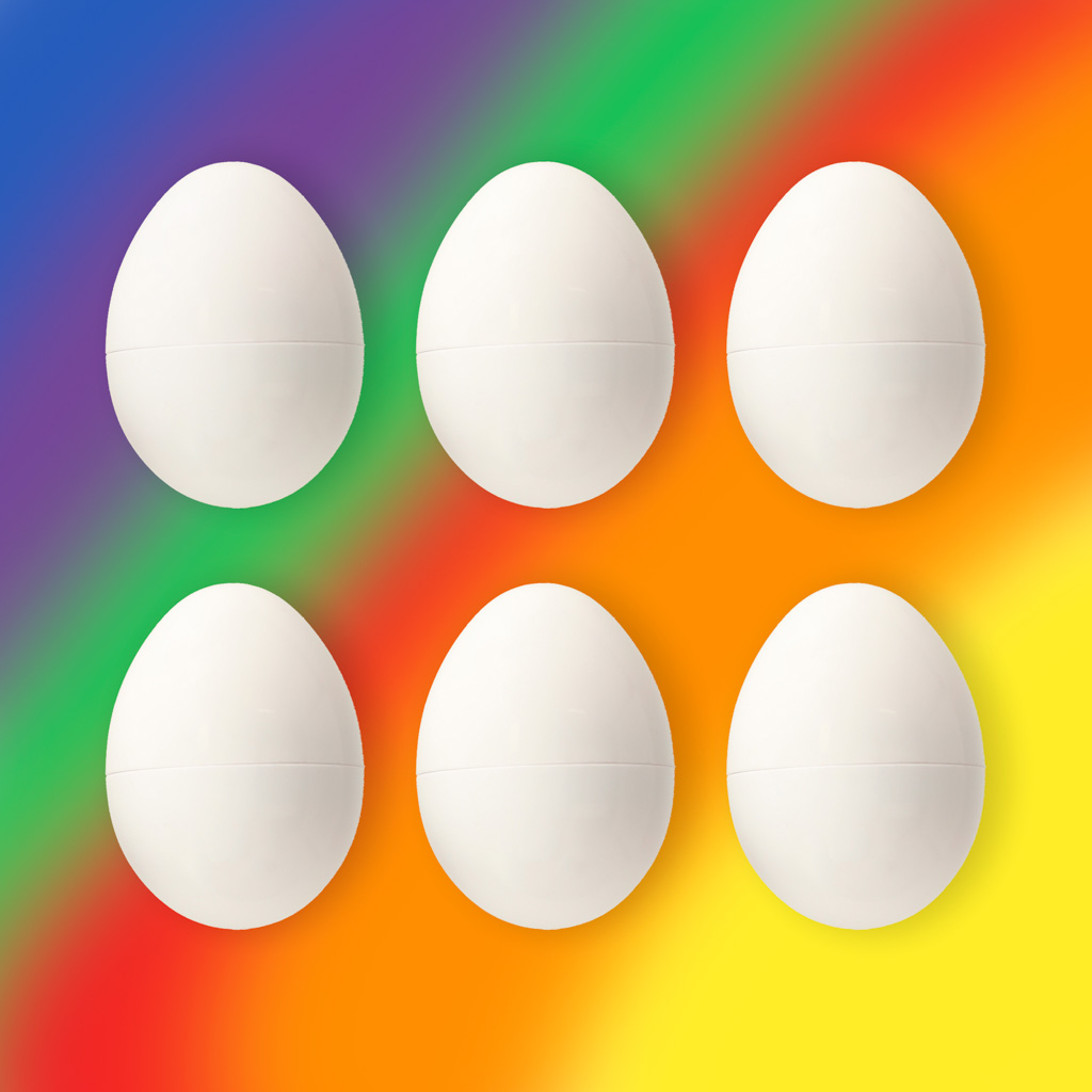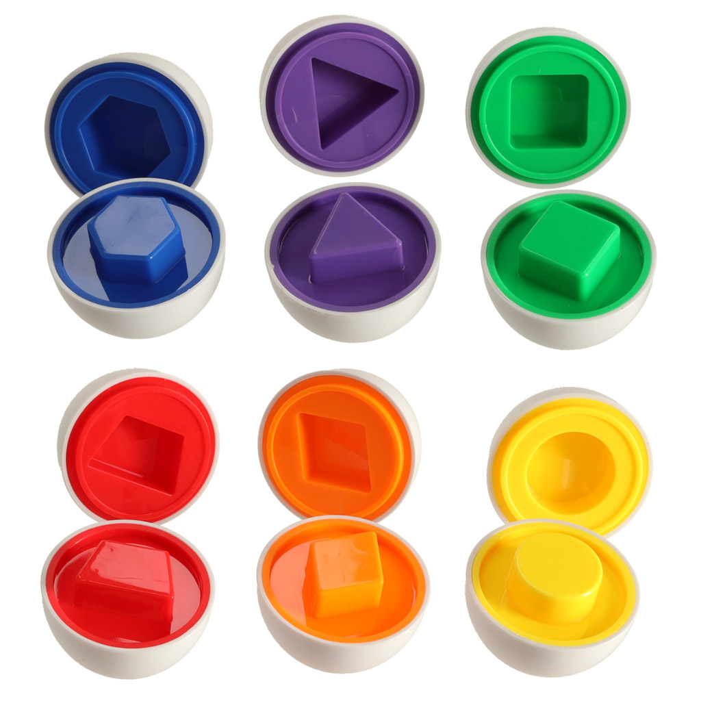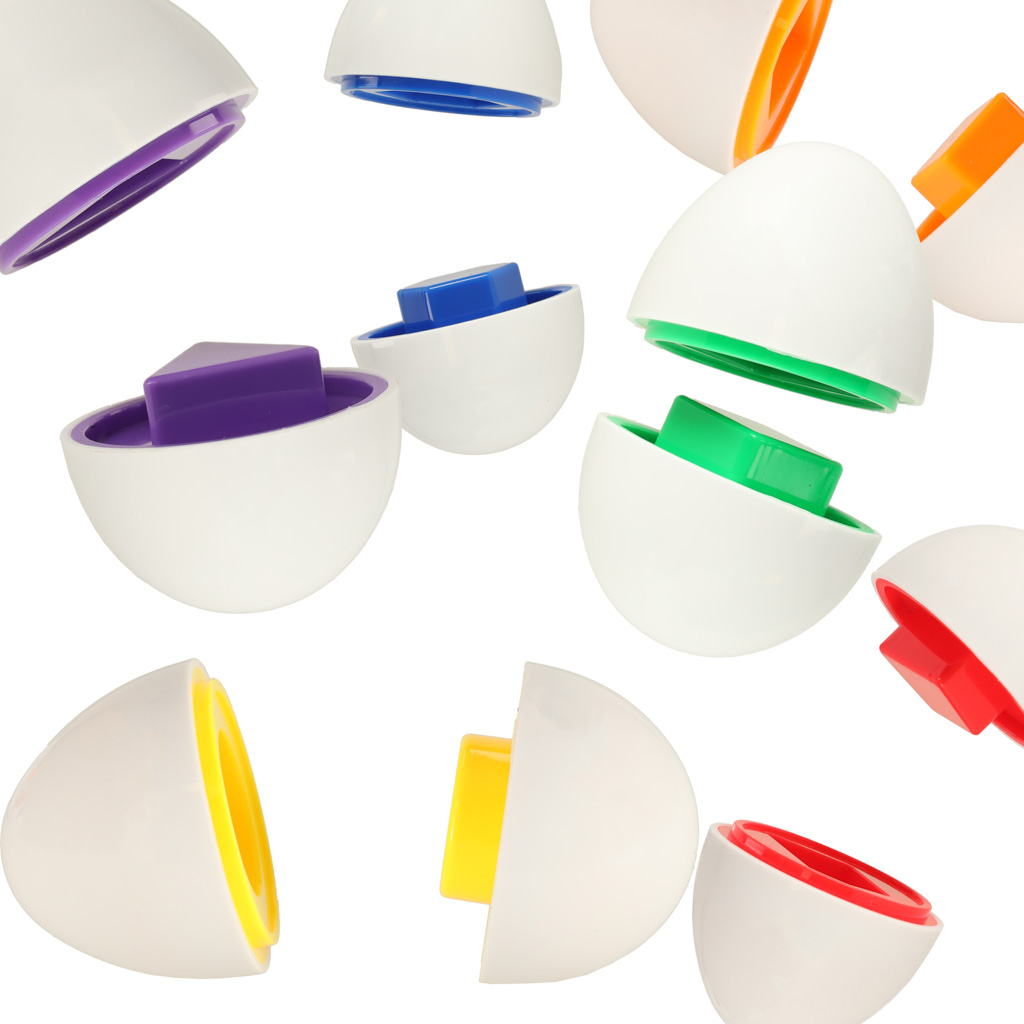 Zabawka edukacyjna dla najmłodszych dzieci. Zabawa polega na łączeniu ze sobą dwóch połówek jajka w taki sposób, aby pasowały do siebie kształtem i kolorem.
